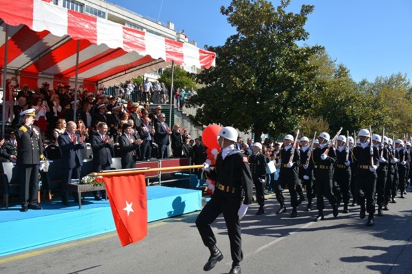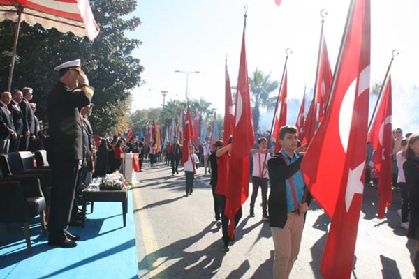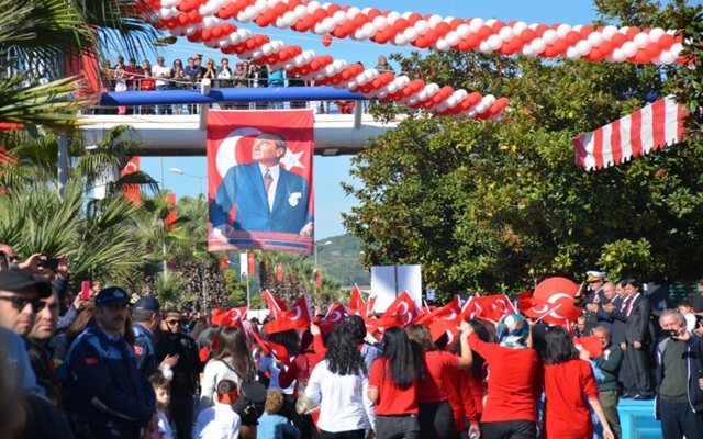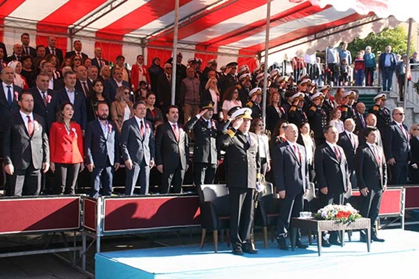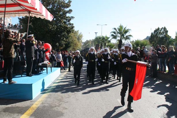 Resmi bayram kutlamaları ise bayraklar ve Atatürk resimleriyle süslenen Sahil Bulvarında gerçekleştirildi. Tören öncesinde ilçedeki okulardan öğretmen ve öğrenciler, askeri birlikler ve sivil toplum kuruluşu temsilcileri alanda yerlerini aldı. Vatandaşların sahil bulvarına hakim Ruhi Cöbekoğlu Üstgeçidi, Yalı Caddesi ve yolun iki tarafında kalan boşlukları tamamen doldurduğu gözlendi.