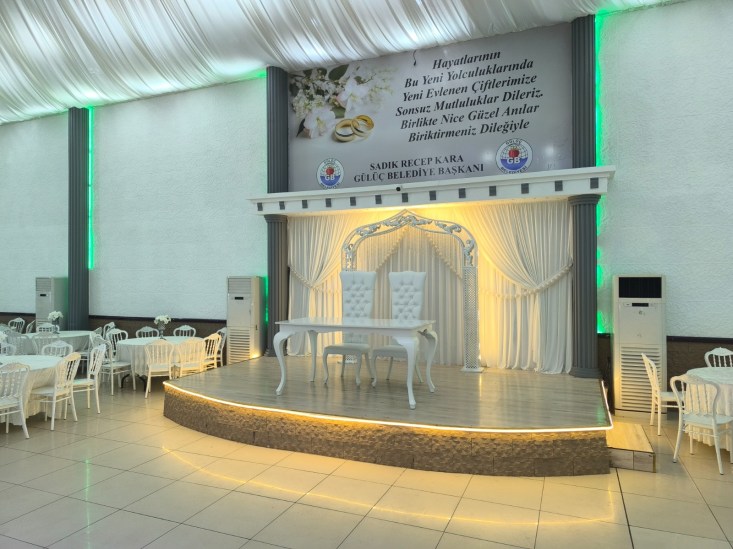 Gülüç Belediyesi Düğün Salonu, Belediye Başkanımız Sayın Sadık Recep Kara’nın talimatları doğrultusunda baştan sona yenilenerek modern ve şık bir görünüme kavuşturuldu.