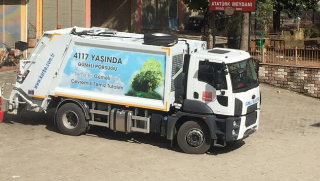 Türkiye Belediyeler Birliğinden Gümeli Belediyesine hibe edilen çöp toplama aracı, trafik işlemlerinin tamamlanmasının ardından hizmete başladı.