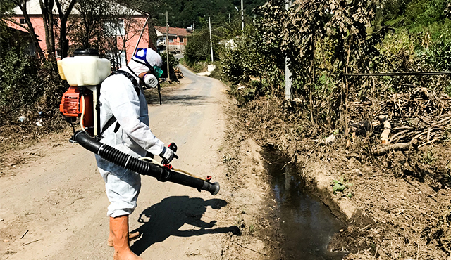 Güneşli'de sel sonrası ilaçlama yapıldı