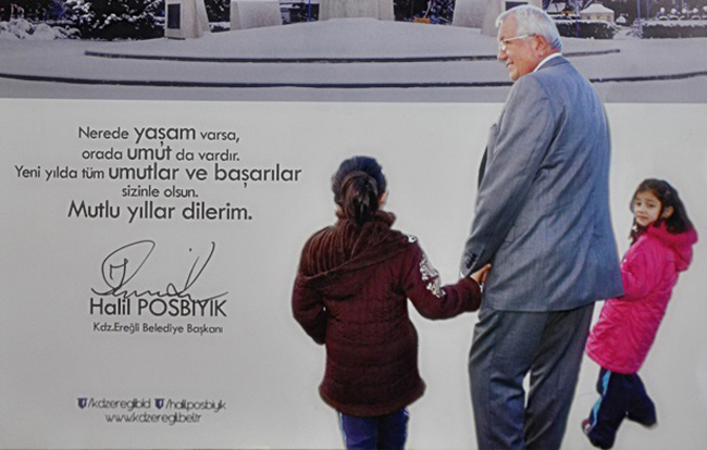 Belediye takviminin kapağı.. 70lik Başkan, torunlarının elinden tutmuş, gidiyor!.. Sırtı hala dönük!...