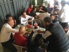 Seçim sonrası yeni başkan Karaarslan, Halk Otobüsü sahipleri ve şoförlerine Kepezdeki evinin önünde yemek ziyafeti verdi.