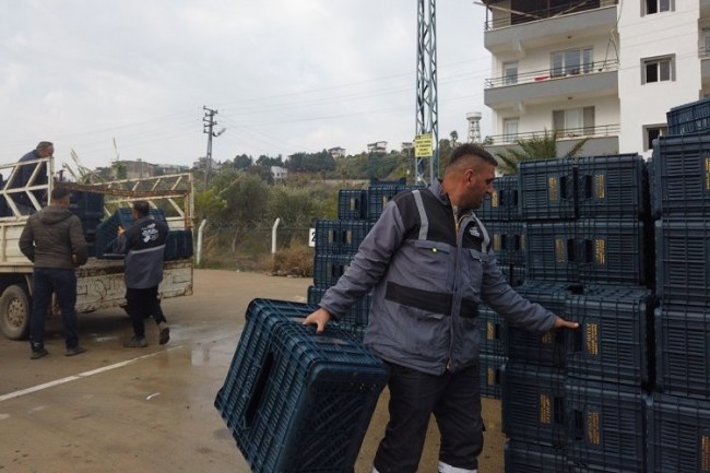 HBB Park Bahçe ve Yeşil Alanlar Daire Başkanlığı ekipleri, zeytinciliği destekleme projesi kapsamında başvuru yapan üreticilere, yağ kapasitesinin artırılması, taşımayı kolaylaştırma, kızışma, ezilme ve küflenmeye neden olan zararların ortadan kaldırılması amacıyla 30 kilogram taşıma kapasiteli zeytin kasalarını dağıtmaya devam ediyor.