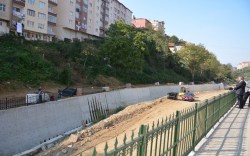 “280 metre uzunluğunda ıslah çalışması kapsamında bitirilen derenin duvar yükseklikleri 5’er ve 3’er metre yapıldı. Dere kenarında 6 metrelik gezi yolu, 7 metrelik araç yolu, sağlı sollu kaldırımları yapılıyor. Bu bölgedeki enerji yer altına alındı ve sokak lambaları yerleştirildi. Şu anda asfaltı yapılıyor ve kaldırım düzenlemeleri devam ediyor. Kaldırımların ve derenin kenarlarına korkuluk yaptırıyoruz.