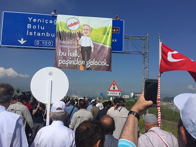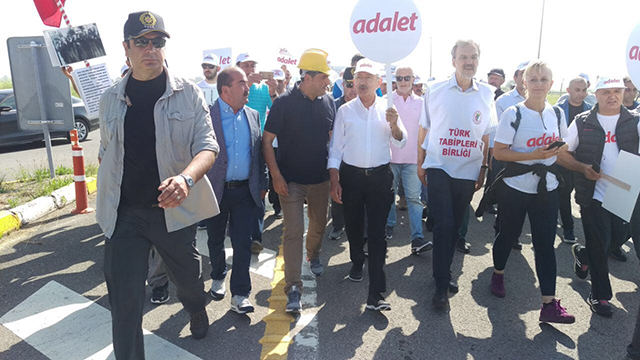 “Bundan 26 yıl önce madenciler Zonguldak’tan, iş, aş, ekmek için baretleri ile yürüdüler. Bugün Kemal Kılıçdaroğlu'nun başlattığı yürüyüşte, hep birlikte “Adalet” için yürüyoruz. 1991 yılındaki madenci yürüyüşü ile 2017’deki “Adalet” yürüyüşünün güzergahları bugün Bolu’nun Mengen ve Yeniçağ İlçesi yakınlarında çakışıyor. Bu anlamlı tesadüf bize Türkiye’nin nerden nereye geldiğini çok açık bir biçimde gösteriyor. 26 yıl önce iş, aş, ekmek taleplerine bugün “Adalet” in eklendiği bir Türkiye’de yaşıyoruz. Anayasa ve evrensel demokratik hakların özünde olan yürüyüşümüz ve mücadelemiz, Türkiye'ye adalet, hak, hukuk gelinceye kadar devam edecek", dedi.