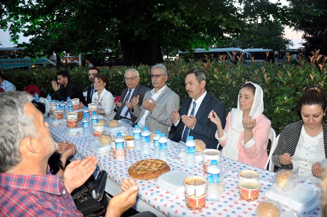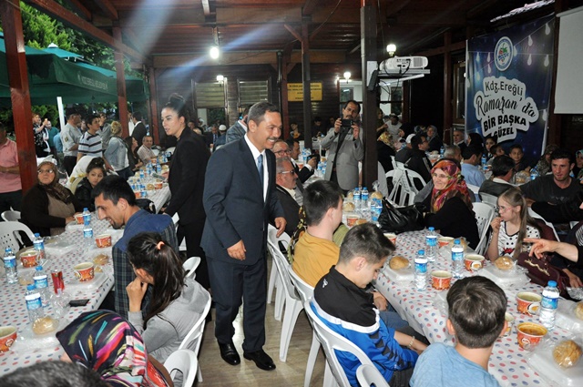 Belediye Başkan yardımcıları Ayhan Atay, Esra Alpago, Atilla Bulak ve bazı belediye meclis üyelerinin de katıldığı iftar öncesi Belediye hocaları tarafından alanda Kur’an-ı Kerim ve ilahiler okunurken, açık havadaki iftara Kdz.Ereğli halkının yaşlısı-genci, çoluk-çocuk aileleriyle birlikte yoğun ilgi gösterdiği görüldü.