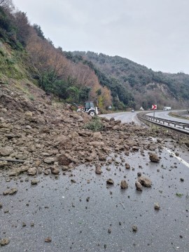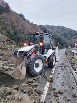 Heyelan, Gülüç Belediyesi ekipleri tarafından kaldırıldı