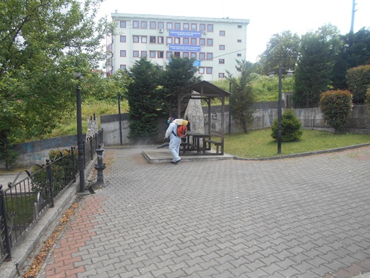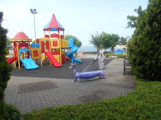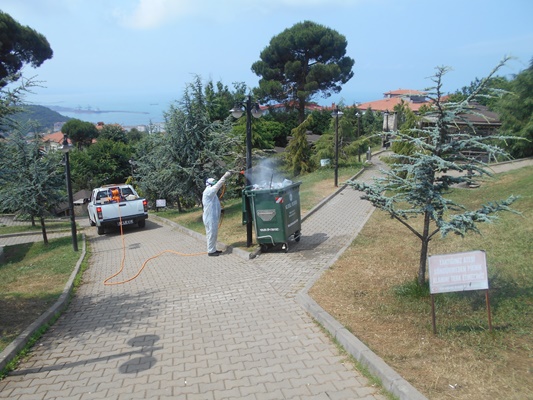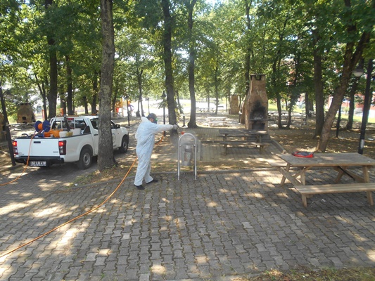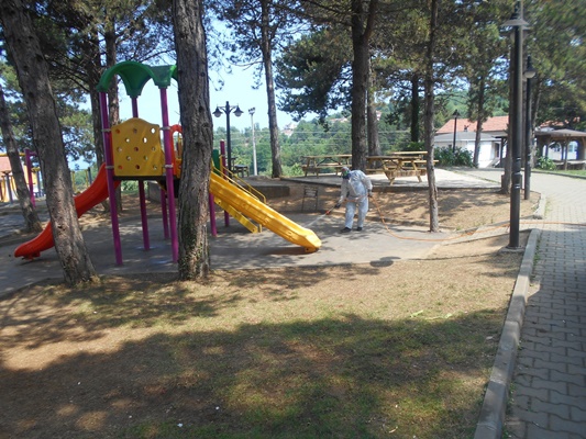 Müdürlük ekipleri, başta çocuk parkları olmak üzere, piknik alanlarında, çöp kutusu ve konteynırlarda, mazgallarda ilaçlama ve dezenfeksiyon işlemlerini periyodik olarak sürdürüyor.