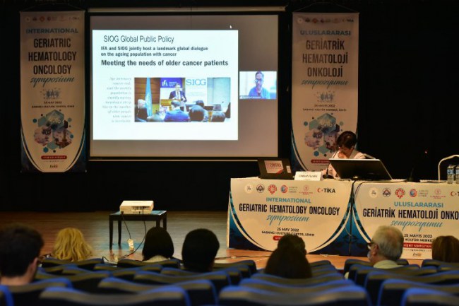 Toplantıya Singapur'dan çevrimiçi olarak katılan Uluslararası Geriatrik Onkoloji Derneği Başkanı Sayın Ravindran Kanesvaran dünya genelinde 2050 yılı itibariyle 65 yaş ve üzeri nüfusun 1.5 milyarın üstüne çıkacağını söyledi. Kanesvaran, en hızlı yaşlanan ülkelerin gelişmekte olan ülkeler olacağına dikkat çekerek, "Kanser bir yaşlanma hastalığıdır. Yaşlı sayısına bağlı olarak kanser hastası sayısı da artacak" dedi. Eğitim, klinik uygulama, araştırma faaliyetlerinin ve işbirliklerinin kanser konusundaki çalışmalar için büyük önem taşıdığını söyleyen Kanesvaran, "Teletıp uygulamalarıyla, uluslararası alanda yapacağımız işbirlikleriyle ileri yaş kanserlerinde mesafe kat edebiliriz" açıklamasında bulundu.
