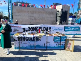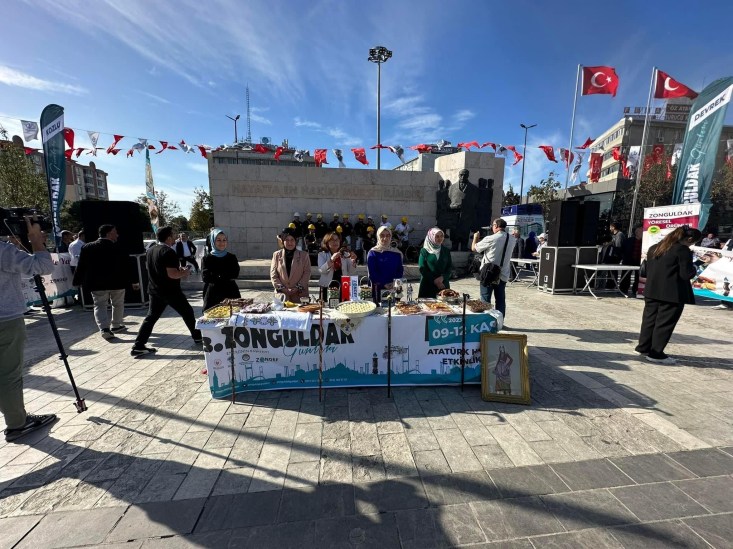 Bağcılar meydanında vatandaşlara Zonguldak’ın beyaz baklavası, Devrek simidi, aronya meyvesi, manda yoğurdu, fındık, kestane, kabaklı börek, malay, zılbıt ve çükündür yemeği ikram edildi.
