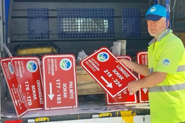 Sakarya'nın kültürel ve doğal güzelliklerini yansıtan sokak ve cadde isimleriyle şehrin minyatür bir yansıması olarak tasarlanan tabelalar konteyner kent sakinleri için hazır hale getirildi.
