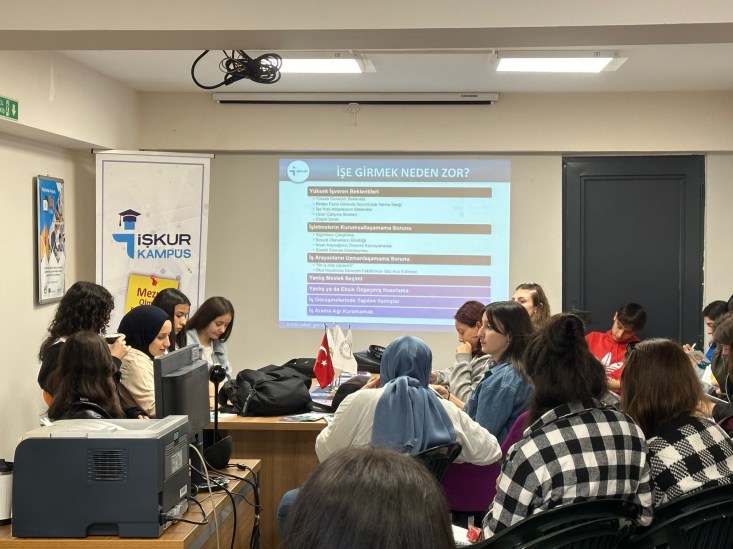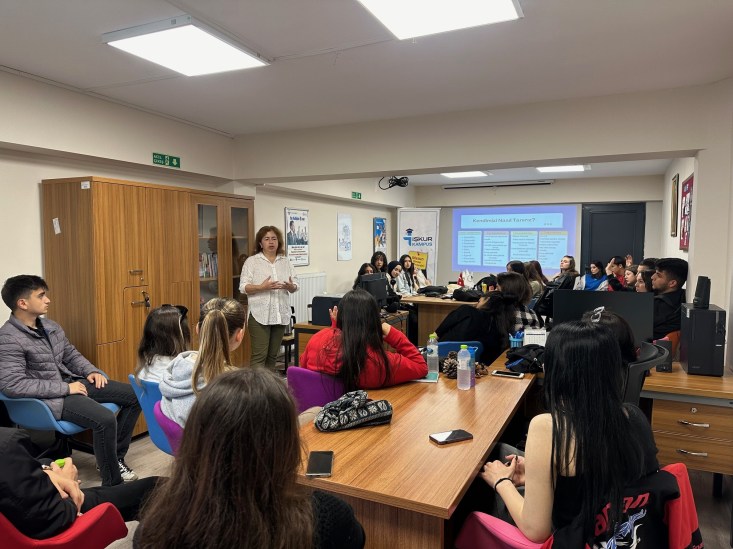 35 öğrencinin katılım sağladığı eğitimde İŞKUR İş Kulübü Lideri Nurcan YILMAZ tarafından öğrencilere kendini tanıma, güçlü ve geliştirilmesi gereken yönlerinin farkına varma, hedef belirleme, iş hayatına giriş öncesi edinilmesi gereken beceriler, iş arama ağı oluşturma, CV hazırlama konularında bilgilendirme yapıldı.