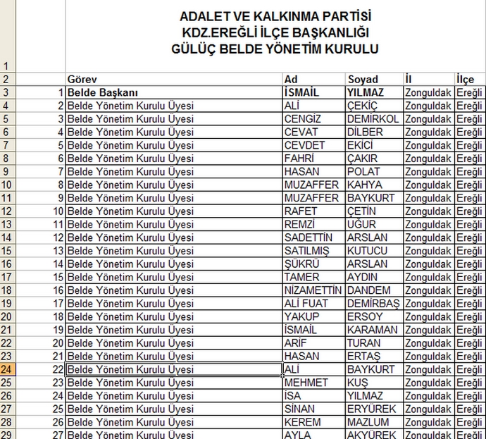 Yeni Gülüç Belde Başkan ve Yönetim Kurulu şu isimlerden oluştu:
