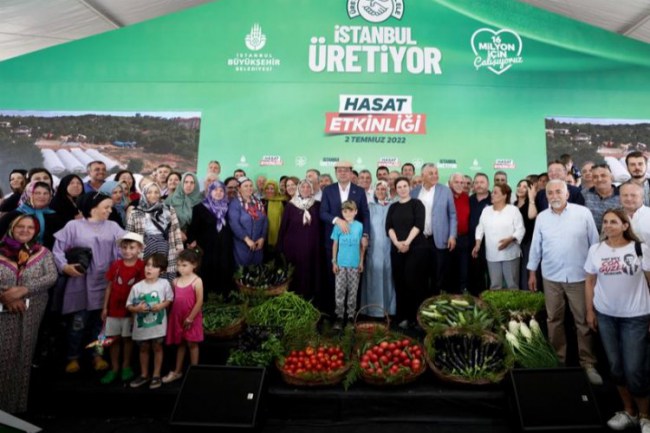 İstanbul Büyükşehir Belediye Başkanı Ekrem İmamoğlu, İstanbullu üreticilere ücretsiz dağıttığı fideler, meyve ve sebzelerin hasadını da köylülerle birlikte yaptı.