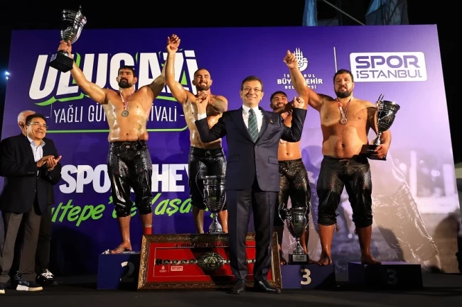 Türkiye Belediyeler Birliği ve İstanbul Büyükşehir Belediye Başkanı Ekrem İmamoğlu, bu yıl dördüncü kez düzenlenen Ulugazi Yağlı Güreş Festivali finalini izledi.