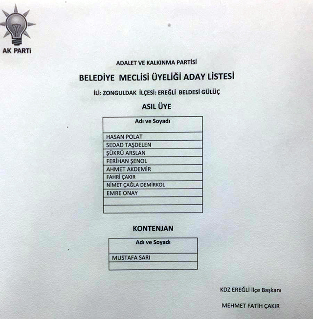 Gülüç Belediye Başkanı Gökhan Demirtaş'ın listesi açıklandı..