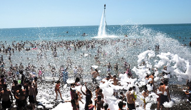 Su Sporları Flayboard ustası, Türkiye birincisi ve Dünya ikincisi Ali Komşusu Ereğli’ye geldi.. Plajda Flayboard ve köpük show partisi görülmeye değerdi..