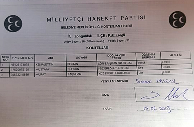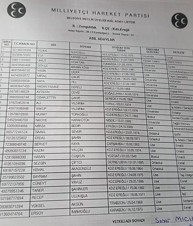 MHP, Ereğli Belediye Meclis listesi belli oldu..