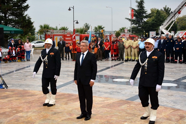 Atatürk Anıtında düzenlenen törene Kdz.Ereğli Belediye Başkan vekili Esra Alpago, Karadeniz Bölge ve Garnizon Komutan vekili Deniz Piyade Albay Neşet İnan, Belediye Başkan Yardımcıları Ayhan Atay, Hüseyin Ağlar ve Atilla Bulak, Belediye Meclis üyeleri, daire müdürleri ve itfaiye personeli, Askeriye, TTK, Erdemir ve Orman İşletme Müdürlüklerinin itfaiye birimi temsilcileri de katıldı.
