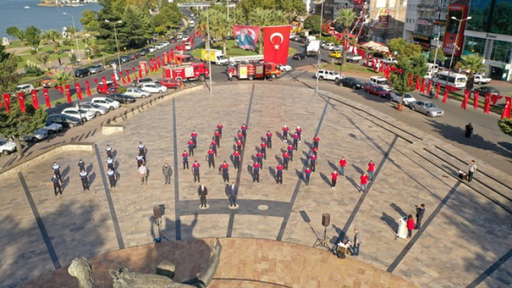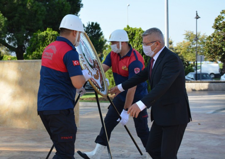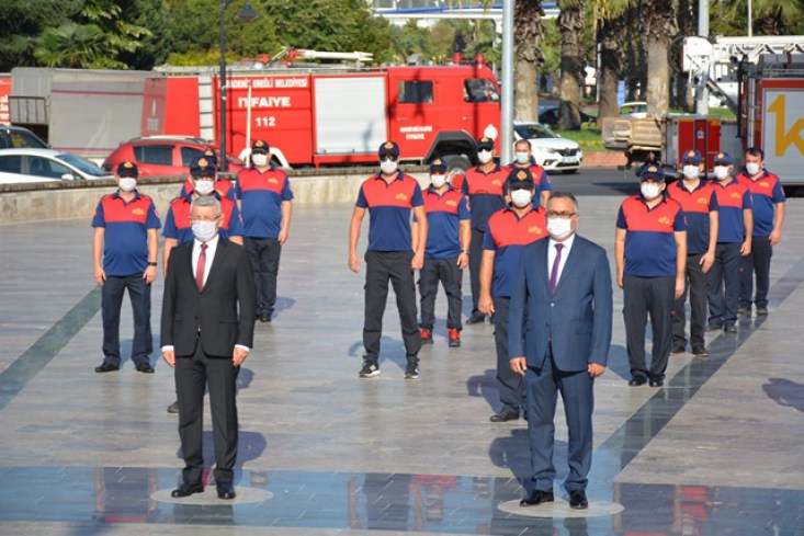 Belediye Başkan Yardımcısı Atilla Bulak, İtfaiye Müdürü Muhammet Ali Ateş ve İtfaiye personeli Atatürk Anıtı’na çelenk sundu, saygı duruşunda bulunarak İstiklal Marşı’nı okudu.