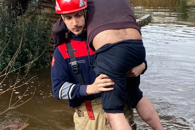 İtfaiye eri Alper Aksular araziyi kaplayan suyun ortasında yalnız kalan D.D'yi sırtına aldı. Bel hizasındaki suyu aşarak güvenli alana doğru ilerleyen Aksular, ekip arkadaşlarının yardımıyla mağduru sudan çıkardı. Ekipler tarafından güvenli alana çıkarılan D.D'nin ilk kontrollerinde sağlık durumunun iyi olduğu ve herhangi bir tıbbi müdahaleye ihtiyaç duymadığı tespit edildi.