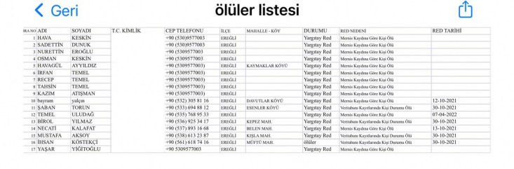 Kdz.Ereği İYİ Parti İlçe Teşkilatında yapılan 'paralel üye' skandalı devam ederken; İYİ Parti Kdz.Ereğli İlçe Sekreteri görevinde bulunan Münevver Büyükalgan'ın 2019 yılında vefat eden babası Necati Kalafat'ın 13.10.2021 tarihinde partiye üye yapıldığı ortaya çıktı.