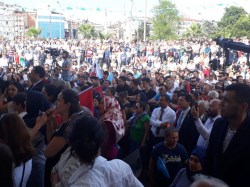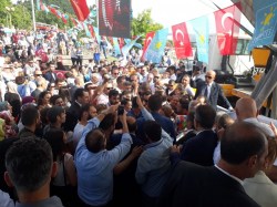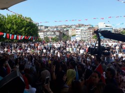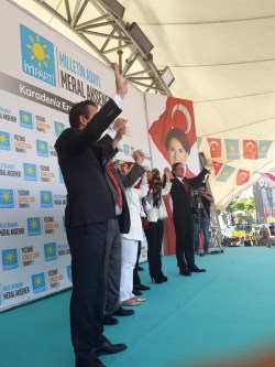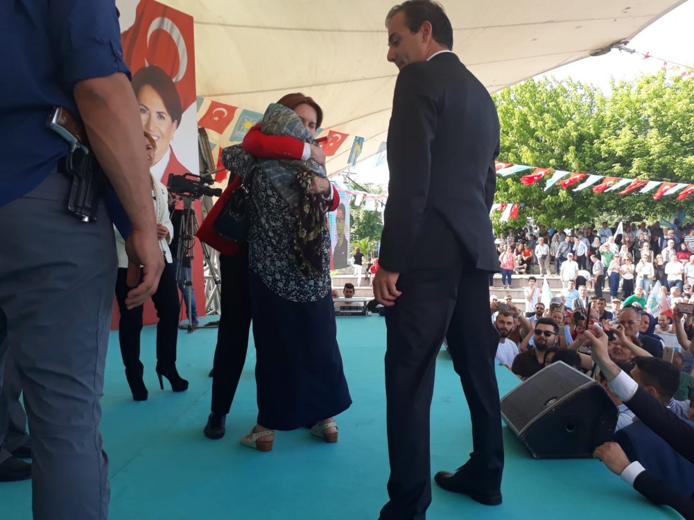 Seçim otobüsü ile ilçeye gelen Meral Akşener’i vekil adayları ve partililer katıldı. İstiklal Marşı’nın okunmasının ardından kürsüye çıkan Meral Akşener’e özellikle kadınlar büyük ilgi gösterdi. Kendisine verilen yazmaları alarak öpen Akşener’ e yaşlı teyze tarafından seçim desteği için 100 lira verildi. Parayı alan Akşener “Beni her gittiğim yerde ağlatıyorsunuz. Bir teyzemiz bana iki tane elli lira verdi. Bunu hemen seçim desteği olarak hesabıma yatıracağım” dedi.