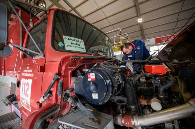 Atölye Formeni Mustafa Okkan, İzmir Büyükşehir Belediyesi İtfaiye Dairesi Başkanlığı envanterindeki tüm araç, gerecin bakım ve onarımını yaptıklarını söylüyor. İtfaiye araçlarının periyodik bakımlarını düzenli olarak gerçekleştirdiklerini anlatan Okkan, "Afetlerde sahaya gidip teknik destek veriyoruz. Biz de olağanüstü durumlarda itfaiyecilerle birlikte hareket ediyoruz" dedi. Bu atölyede yapılan her işlem, aslında bir hayatın daha güvence altına alınmasını sağlıyor. Okkan, "Araçların yazlık, kışlık tüm bakımlarını yapıyoruz. Arızaları gideriyoruz. İtfaiye araçlarının yüzde 91'inin bakımını kendi atölyemizde yapıyoruz. Dışarıya yaptırmak çok maliyetli olurdu. Biz belediyemizin öz kaynaklarıyla bu işi yapıyoruz" diyor.