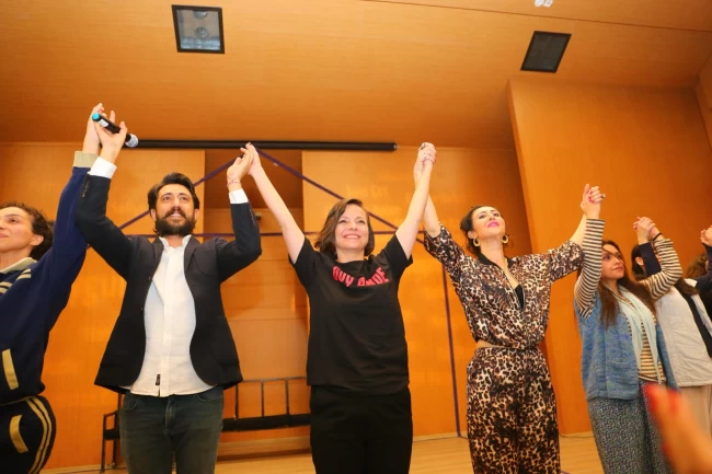 Oyunda hikayesi anlatılan kadınlar için sorulan "O kadınları bilir misiniz?" sorusu hakkında konuşan Başkan Kınay, "Kadının ne işi var dedikleri Karabağlar'da kadın belediye başkanı olarak buradayım" Bir yıl önce "Karabağlar'da kadının ne işi var, kadından başkan olur mu?" denilen Karabağlar'da kadın bir belediye başkanı olarak konuştuğunu söyleyen Başkan Kınay, 55 günde sokak sokak, ev ev gezen; inançlarını ve yüreklerini paylaşan Karabağlar'ın kadınları, gençleri ve emekçileri sayesinde bugün burada olduğunu belirtti.