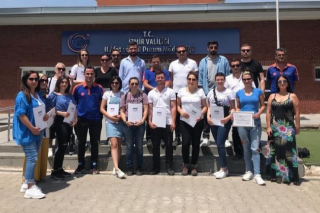İzmir İl AFAD Müdürlüğü'nün Bornova'ya bağlı Doğanlar'daki yerleşkesinde 11 Narlıdere Belediyesi AFAD Gönüllüsü'ne 5 gün boyunca tam zamanlı olarak çeşitli eğitimler verildi.