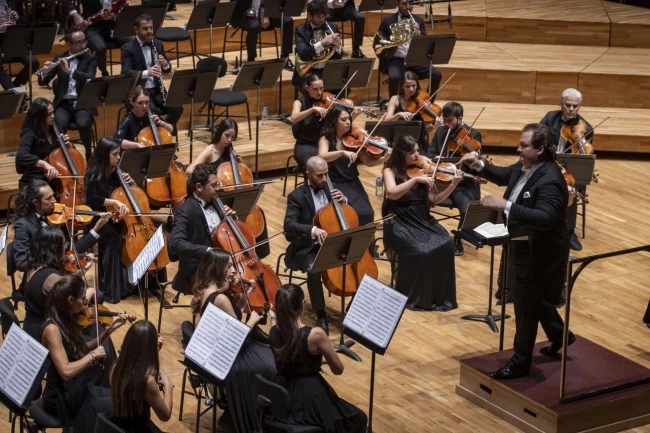 İZMİR (İGFA) - İzmir Büyükşehir Belediye Başkanı Dr. Cemil Tugay, Ahmed Adnan Saygun Sanat Merkezi'nde (AASSM) gerçekleşen İzmir Oda Orkestrası konserine katıldı. İzmirli sanatseverlere müzik ziyafeti sunan programın ilk yarısında HR Frankfurt Radyo Senfoni Orkestrası'nın Başkemancısı Bükreşli sanatçı Florin Iliescu, repertuvarının en virtüözistik eserlerinden H. Wieniawski Polonaise de Concert, op.4 (Konser Polonezi) ve E. Ysaye Caprice d'après L'Étude en Forme de Valse (Vals Biçimindeki Etüt Üzerine Kapris) yapıtlarını seslendirdi.