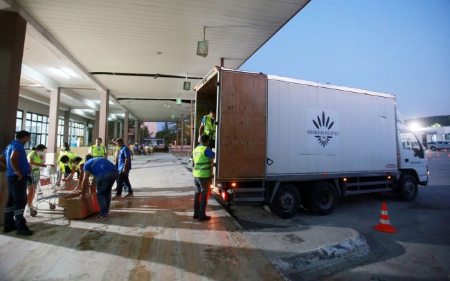 İzmir'de Karabağlar Belediyesi, yangın bölgeleriyle dayanışmak için başlattığı kampanya kapsamında tedarik ettiği ve vatandaşların getirdiği malzemeleri Muğla'ya ulaştırdı.