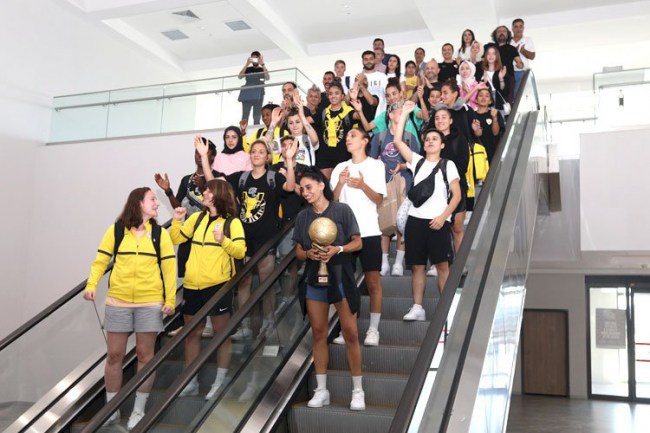 Takımı çiçeklerle karşılayan ve teknik heyet ile sporcuları tek tek tebrik eden Başkan Fatma Şahin, şampiyon sporcularla bir süre sohbet etti.