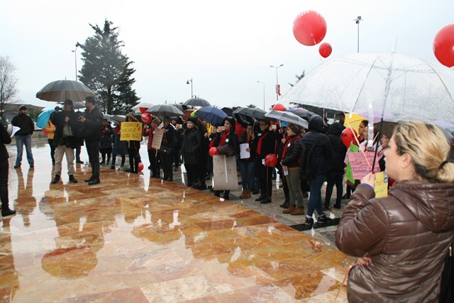 “Haklılığımızdan ve mücadelemizden aldığımız güçle taleplerimizi bir kez daha buradan ifade ediyoruz: OHAL ve KHK rejimi son bulmalı, KHK’lar ile sadece muhalif kimliklerinden dolayı ya da haksız suçlanan, görevlerinden ihraç edilen ve tutuklanan kadınların mağduriyeti bir an önce giderilmelidir. Esnek, güvencesiz, kayıt dışı çalışmaya son verilmeli, güvenceli ve insana yakışır çalışma koşulları sağlanmalıdır.