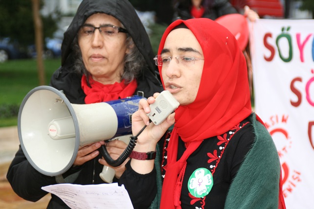 Platform Sözcüsü ve SES İlçe Temsilcisi Hamide İpek, etkinlikte Türkiye’de kadın cinayetlerinin yüzde 1400, cinsel taciz ve tecavüzün yüzde 38, cinsel istismarın yüzde 53 oranında artışına, kadını yok sayan politikaların yol açtığını belirterek şunları söyledi: