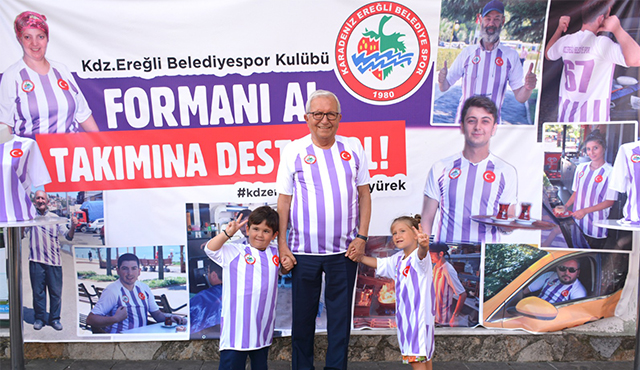 Kdz. Ereğli Belediye Başkanı ve Ereğli Belediyespor Kulüp Başkanı Halil Posbıyık, eşi, kızı ve torunları ile ‘Formanı al, Takımına destek ol!’ kampanyasına destek verdi.