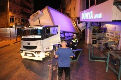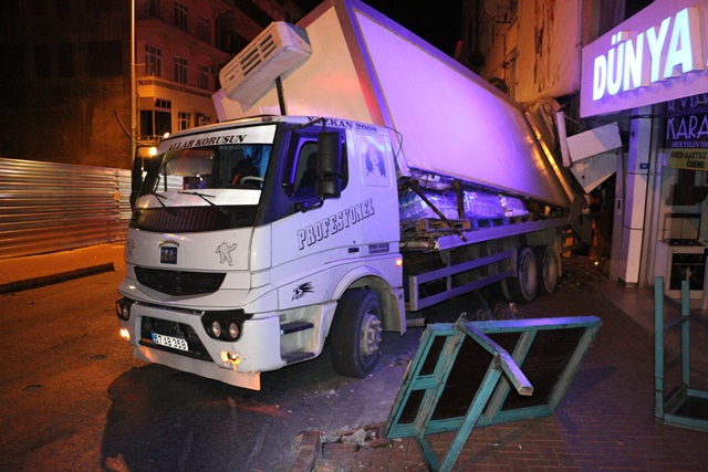Kdz.Ereğli ilçesinde freni boşalan kamyon iş yerine girerek durabildi. Apartmanlarda oturanlar deprem olduğunu zannederek dışarıya fırladı.