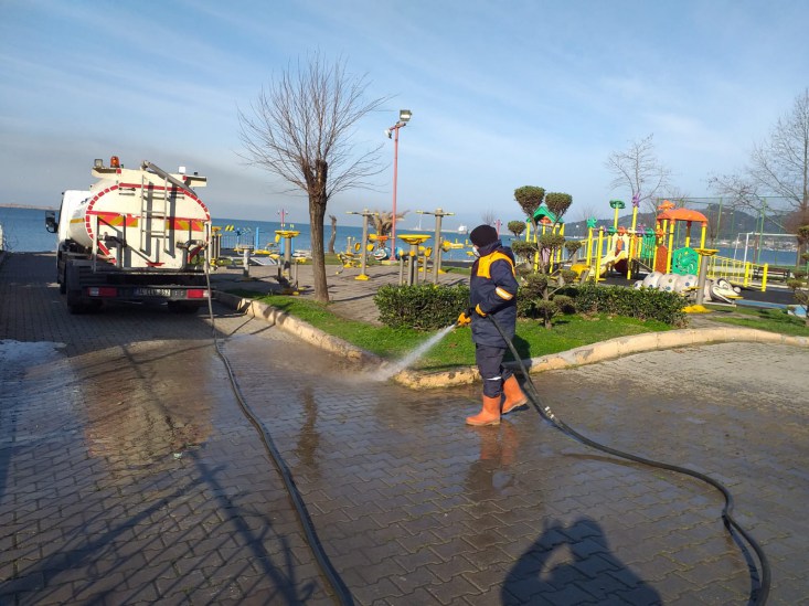 Kar yağışının hafta boyunca etkili olduğu kentte, Temizlik İşleri Müdürlüğü ekipleri cadde ve sokakları köpüklü su ile yıkadı. Ekipler plajlar bölgesinde, ana yol kenarlarında ve mahalle aralarında çöp temizliği yaptı. Yaya ve araç trafiğinin kısıtlama nedeniyle az olmasını fırsata çeviren Fen İşleri Müdürlüğü ekipleri de kar ve buzlanmadan dolayı zarar gören yaya kaldırımlarında bakım, onarım çalışması yaptı. Buzlanma olan yollarda tuzlama çalışması yaptı. Su ve Kanalizasyon İşleri Müdürlüğü ekipleri arıza oluşan su ve kanalizasyon hatlarında onarım çalışması yaptı. Park ve Bahçeler birimi çalışanları şehri güzelleştirmek için çiçek dikim ve bakım çalışmasını sürdürdü.