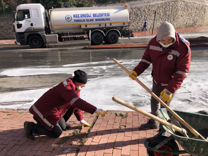 Kdz. Ereğli’de hafta boyunca etkili olan kar yağışından sonra sokağa çıkma kısıtlamasından yararlanan Kdz. Ereğli Belediyesi, hafta sonunda tüm ekipleriyle kentin her bir noktasında çalışma yürüttü. Cadde ve sokaklar yıkandı, hasar gören yaya kaldırımları onarıldı, arıza oluşan su, kanalizasyon hatları tamir edildi ve kenti güzelleştirmek için çiçekler dikildi.
