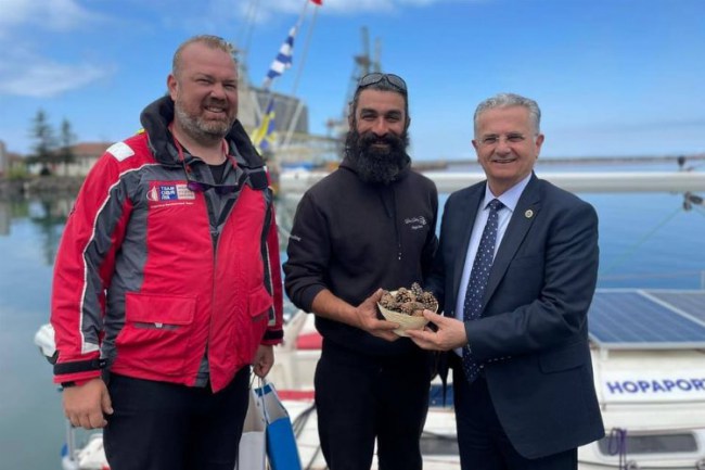 İSTANBUL İGFA- Avrupa İklim Paktı Türkiye Büyükelçisi Utku Gümrükçü öncülüğünde minimum Karbon Ayak İzi hedefiyle Artvin'in Hopa ilçesinden yola çıkan "Gelecek için Yelken Açıyoruz" ekibi, paketli gıda tüketmeden ve motor kullanmadan yalnızca yelkenli ile yol alarak Samsun, Bandırma, Çeşme, Bodrum, Marmaris ve Mersin'in ardından 23. günde Hatay'ın Arsuz ilçesine ulaştı. Ekibi, Arsuz Belediye Başkanı Dr. Asaf Güven, Expo Hatay 2021 Genel Sekreteri İhsan Çakar ve Arsuzlu vatandaşlar Türk bayrakları ve bando eşliğinde karşıladı. Başkan Güven, gösterdikleri duyarlılıktan ötürü ekibe çiçek takdim etti.