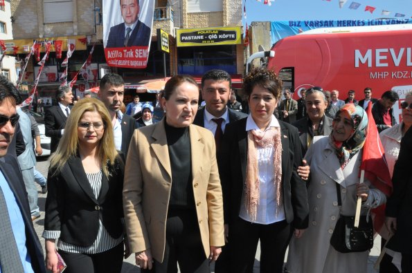 TBMM Başkanvekili Meral Akşener, Kdz.Ereğli pazar yeri Suphi konak Caddesi üzerinde aday tanıtım toplantısına katıldı. Ereğli ilçe ve Belde Belediye Başkan adayları, meclis üyesi adayları, il genel meclis üyesi adayları için destek istedi, kalabalığa seslendi. Başbakanın çatıştıran, milleti birbirinin karşısına diken, fert fert insanları birbirine düşman eden bir dil ile konuştuğunu belirterek, "Bir tarafta da kardeşlik hukukunu koruyan bin yıllık kardeşliğimizi muhafaza etmeye gayret eden gençlerimizin umudunu canlı tutmaya çalışan, gençlerimizi umutsuzluğun batağına itip kavganın odağı haline getirmek isteyenlerin önüne set çeken, gençlerin birbirleri ile kavga etmesinin önüne geçen ülkemizin ekonomik istikrarını da koruyan, doların, euronun fırlamamasına gayret eden, refahını huzurunu koruyan bir dil ve tavır ile davranan sayın Devlet Bahçeli var" dedi.