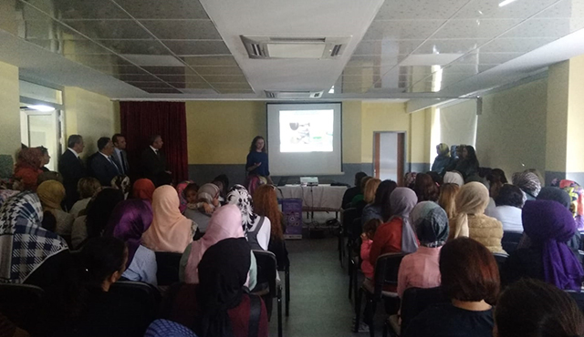 Çevre Mühendisi İlkay Kaynak da katılımcılara, evlerde herkesin temiz çevre için neler yapabileceğine ve belediyenin bu konudaki çalışmalarına ilişkin yarım saatlik bir sunum yaptı. Konutlarda atıkların ayıklanması ve geri dönüşüme gönderilmesi konusunda ayrıntılı bilgilendirmede bulunan Kaynak katılımcılardan, atık yağları biriktirmelerini, kullanım ömrü bitmiş pilleri ve kullanılmayan elektronik eşyaları ayırmalarını istedi.