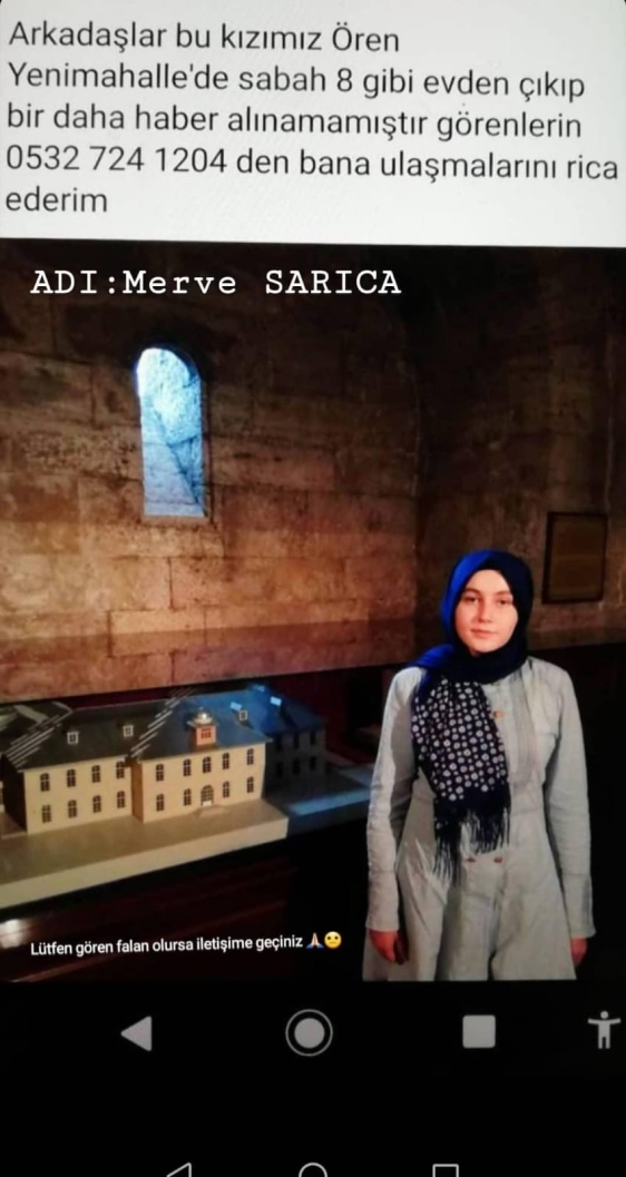 Haber alamayan ailesi ve yakınları, durumu polise bildirdi. Öte yandan Merve Sarıca’yı gören ya da yerini bilenlerin 0 532 724 1204 numaralı telefona bilgi verilmesini istendi.