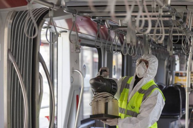Büyükşehir Belediyesi Ulaşım A.Ş. tarafından vatandaşların dezenfekte işlemlerinde pandemi zamanında mağdur olmaması için “güvenli yolculuk” kapsamında bu zamana kadar 20 bin 568 litre dezenfektan kullanıldı. Ayrıca kurumda ve tüm ofislerde, ortak kullanım alanlarında ve bakım atölyelerinde her hafta dezenfeksiyon işlemi yapılırken, makinist ekip binalarında her gün dezenfeksiyon işlemi gerçekleştiriliyor.