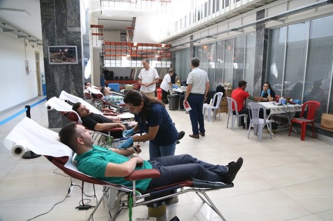 Büyükşehir Belediyesi hizmet binasında kurulan stantta kan bağışına destek olan personel, ilk olarak stantta kayıt formunu doldurdu ve bağış öncesi uygunluk testinden geçti. Kan vermeye uygun olan personel, kan bağışında bulundu.