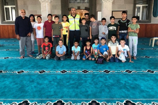 KAYSERİ (İGFA) - Kayseri İl Jandarma Komutanlığı Trafik Jandarması ekipleri; Develi, Kocasinan, Melikgazi, Yahyalı, İncesu, Pınarbaşı, Felahiye, Tomarza ilçelerinde yaz Kur'an kursuna katılan bin 456 öğrenciye, genel trafik kuralları, yaya önceliği konularında trafik eğitimi verildi.
