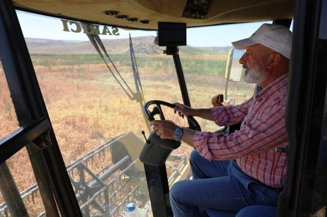 Kayseri Kocasinan Belediye Başkanı Ahmet Çolakbayrakdar, 100 dönüm alanda ekimini yaptığı aspirin hasadını da kendisi yaptı.