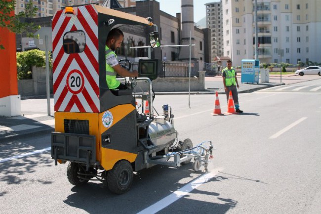Talas Belediyesi, şehir içi yol çizgi uygulamaları için ergonomik olarak tasarlanan kendinden yürür yol çizgi aracı aldı.