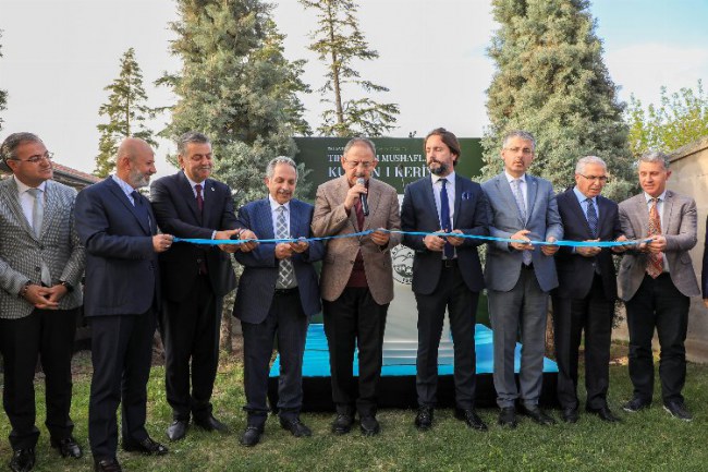 Ardından sergideki tıpkıbasım Mushafları hediye eden küratör Ahmet Taner Özer, teknik bilgiler vererek "Sergideki 6 eser Osmanlı'nın çeşitli dönemlerinde meşhur hattatlar tarafından el yazması eserlerinin birebir tıpkıbasımlarıdır. Bu eserlerin orijinalleri Topkapı Sarayı'nda ve devlet müzelerinde özel izinlerle görülebilmekteydi. Bu eserlerin tıpkıbasımlarının yapılmasıyla artık hem Anadolu'ya hem de dünyanın birçok yerine İslam medeniyeti ve kültürünün muazzam ihtişamı ve Kur'an-ı Kerim ruhunun ışığı ulaşmış oldu. Çok şükür bugün Sayın Mustafa Yalçın başkanımızın gayretiyle bu özel sergiyi açıyoruz. Kendisine emaneti teslim ettik." dedi.