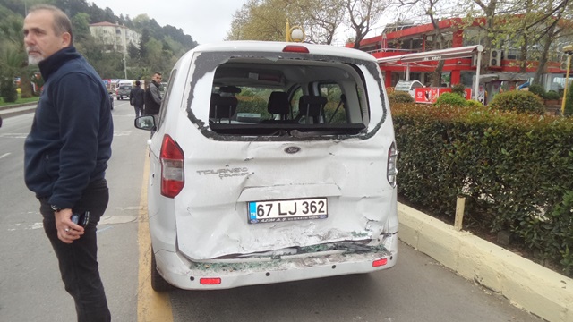 Alınan bilgiye göre, Atatürk Bulvarı’nın, 18 Mart Parkı mevkisinde, öğrenci servisi yapan Asım Sezer idaresindeki 67 S 8058 plakalı minibüs, aynı istikamette seyir halindeki Hüseyin saçaklı yönetimindeki 67 LJ 362 plakalı hafif ticari araca, bu araç da Fatih Mehmet Alagöz’ün kullandığı 55 RM 448 plakalı hafif ticari araca çarparak durabildi.